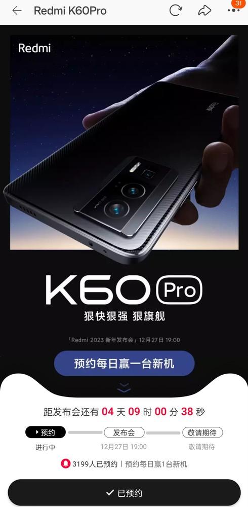 Redmi K60系列已开启预约