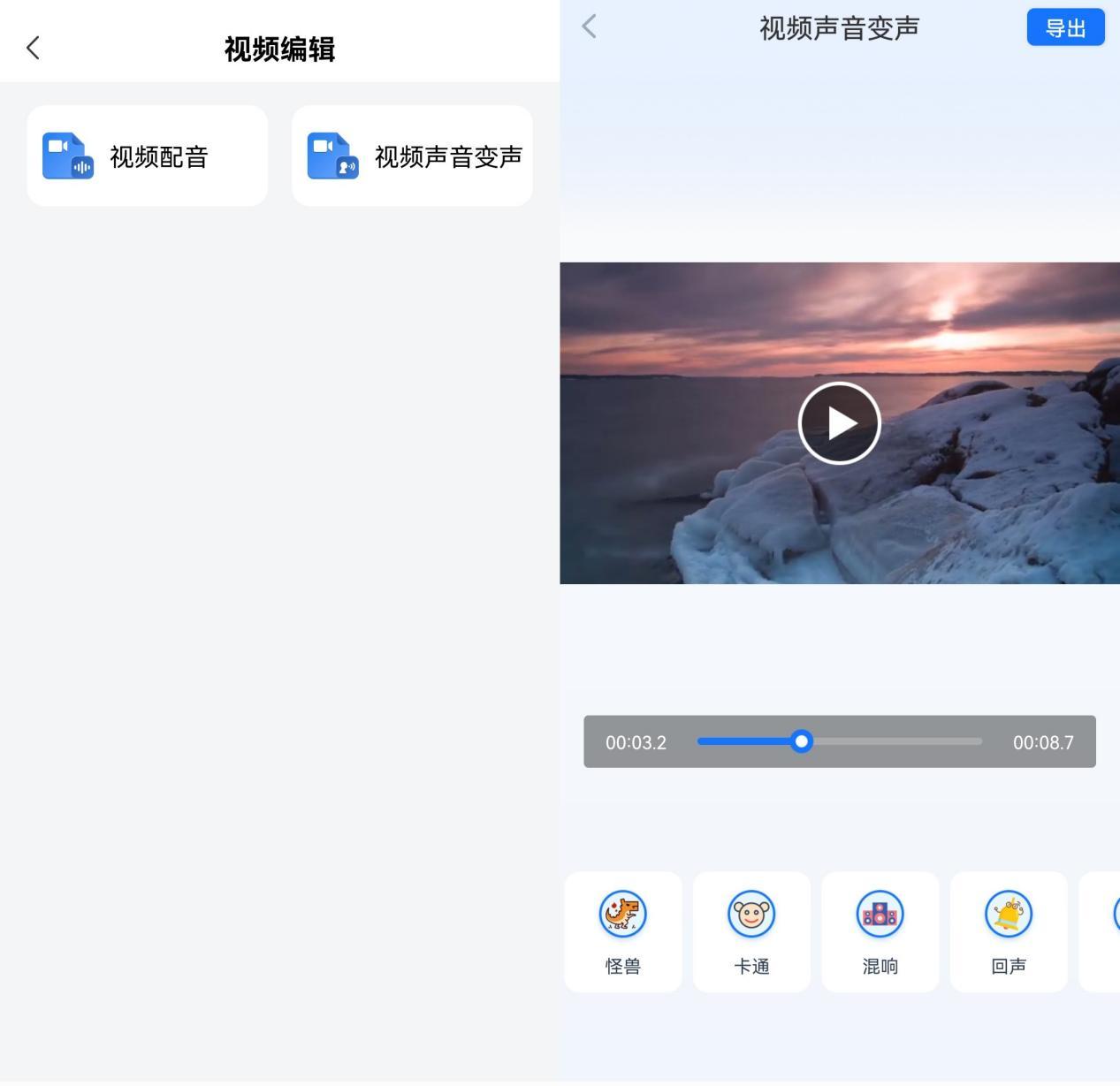 另外,这款软件还拥有非常多实用的应用功能,其中就有我们今天需要的“视频声音变声”功能。该功能能够对视频中声音进行调设,拥有回声、房间、舞台、音响等多种效果,满足大家的各种变声需求。