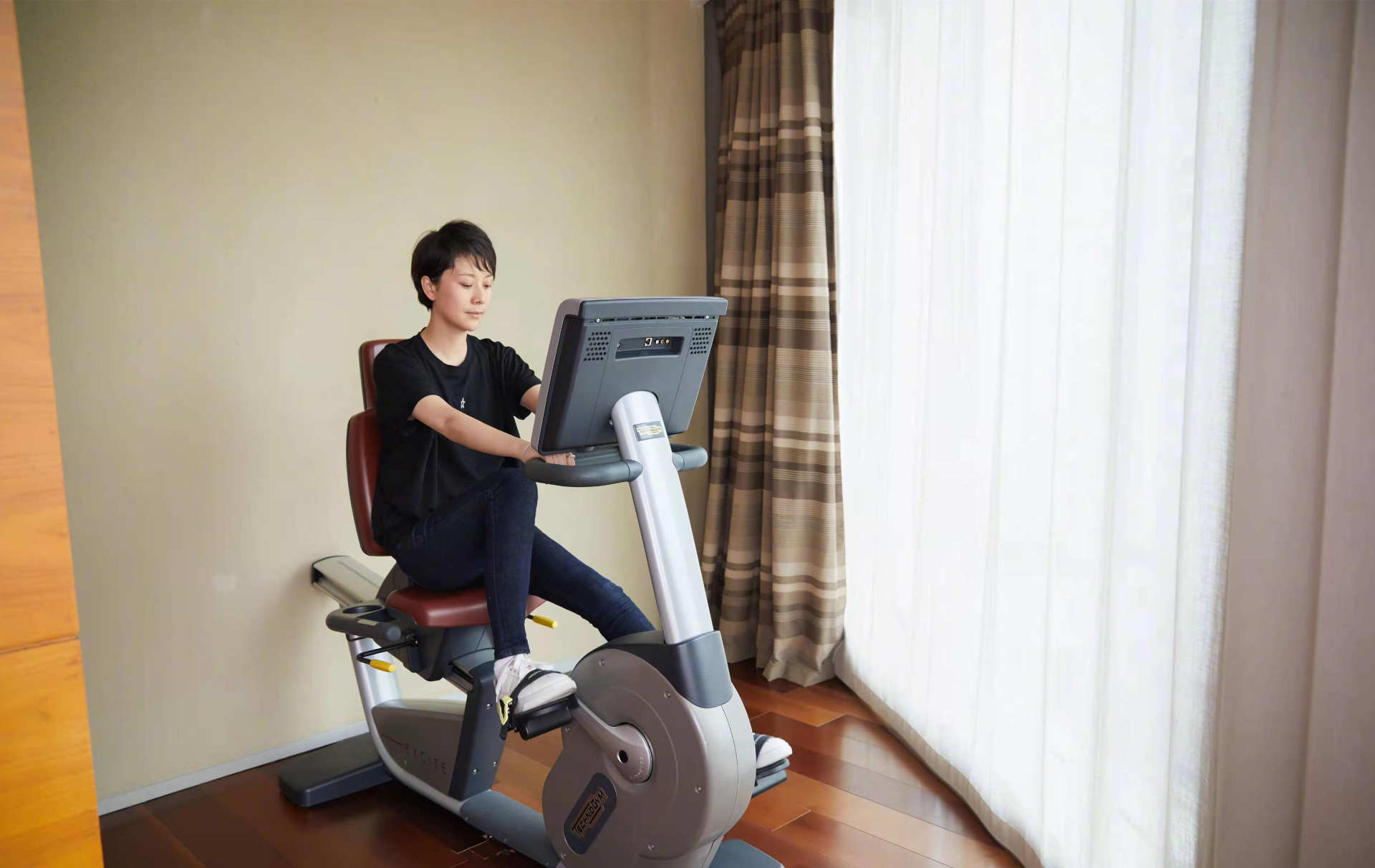 海清现在住的房子还是挺豪华的,面积很大,能分出一个区域让她做运动,还有落地窗。