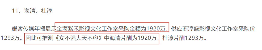 而在2016年,海清与杜淳合作了电视剧《女不强大天不容》,据媒体爆料,海清拍这一部剧的片酬就达到了1920万元。