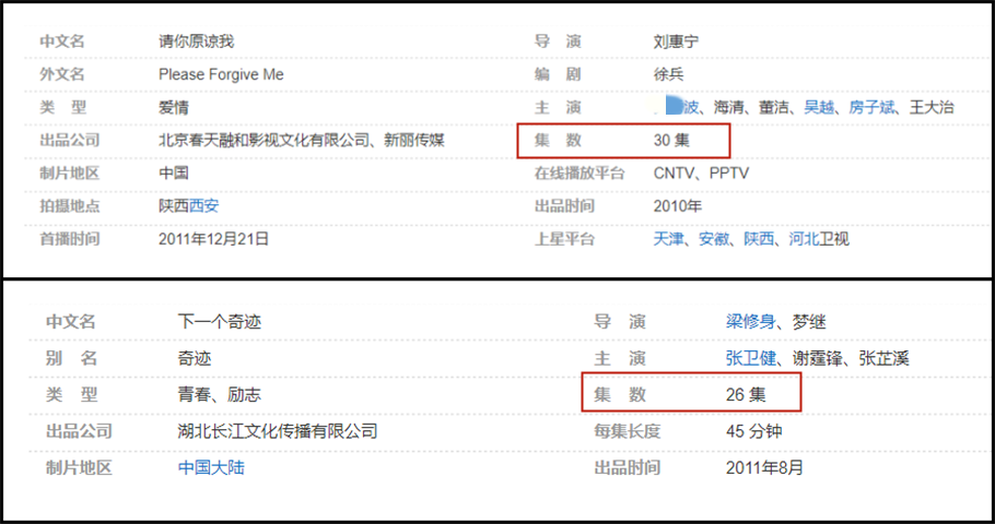 在2011年,海清拍了两部电视剧,其中《请你原谅我》有30集,《下一个奇迹》有26集。