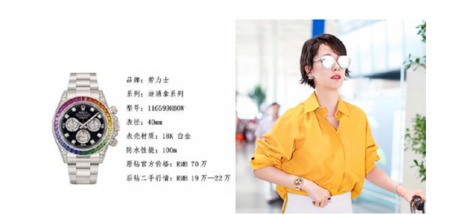 最令人震惊的是,海清有次在机场戴了劳力士迪通拿系列的一款大金表,价值70万元,实在是太豪气了。
