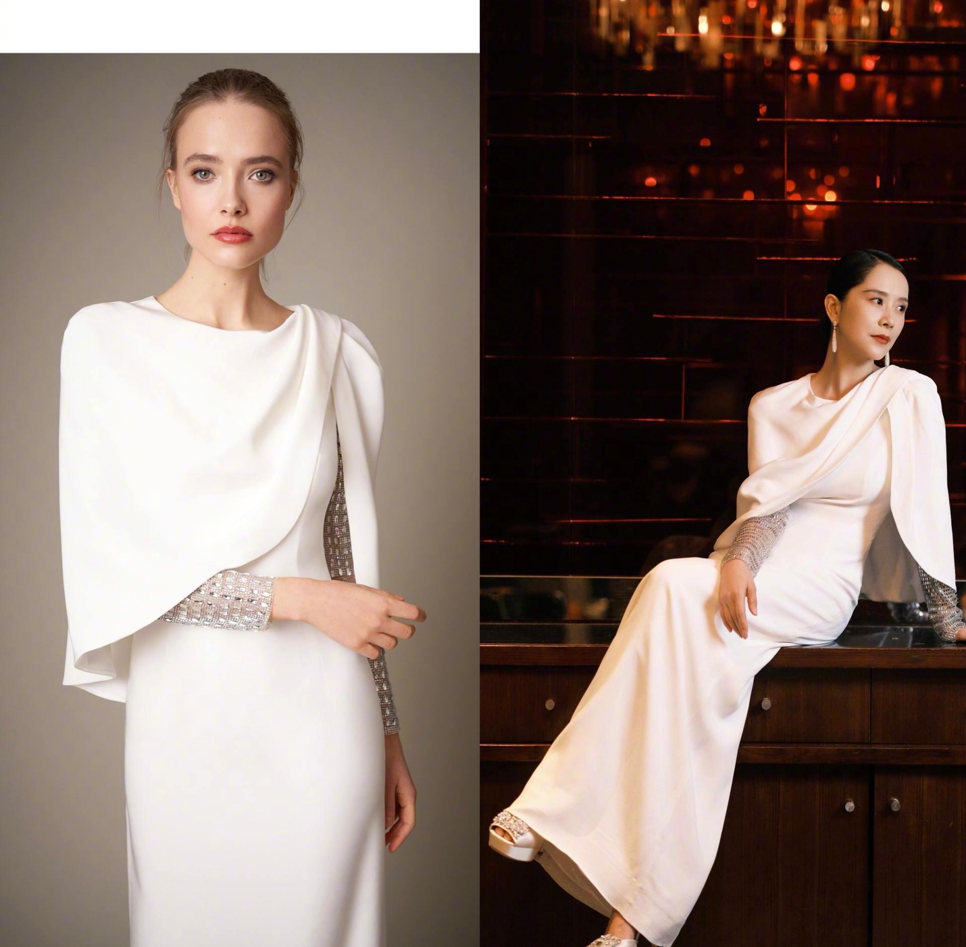 其它的品牌海清也会穿,但对普通人来说都价值不菲。比如她穿的一款白色长裙就是英国设计师 Jenny Packham的作品。