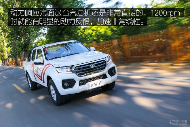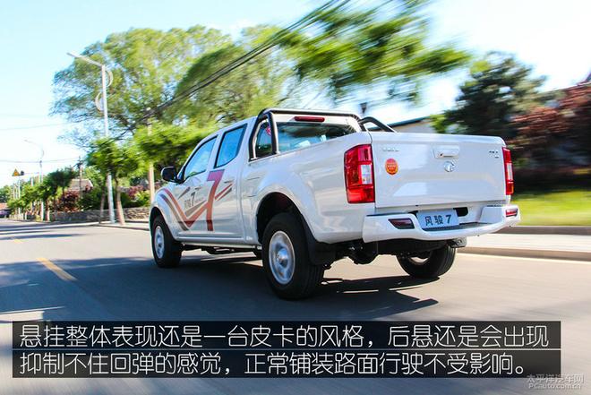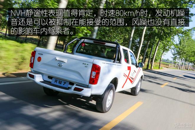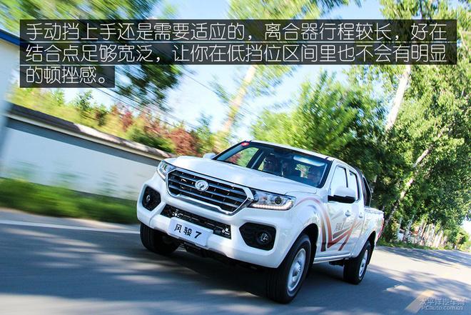 手挡车开明白了会发现其实这台风骏7开起来还是非常顺畅的,低速时的挡位衔接稍有模糊,但3挡之后就会非常顺畅,此时也是这台车最好开的时段,加速响应会很直接,加之其NVH静谧性也足够好,让你有些忘却了自己开的是一台皮卡,感官上可能更像一台SUV。