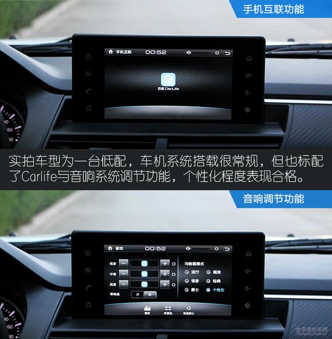 实拍车型为一台低配车,车机系统里并没有高德地图、语音唤醒等功能,但除了低配车型以外,其他车型均得以配备车联网系统,而低配车型仅提供Carlife功能以及常规功能。