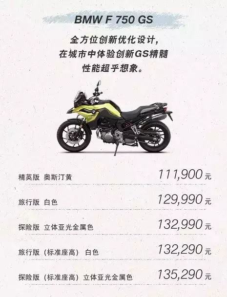 剩下的例如1250GS、S1000RR等车型目前新款车型还没有大贸进入国内所以这些系列的售价官方暂时还未公布。看完宝马摩托的售价后小编的想法依然是便宜的看不上,贵的买不起啊!