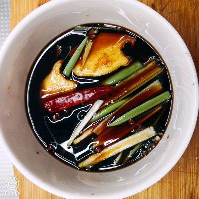 4、碗内放葱,姜,辣椒,花椒粒,胡椒粉,糖