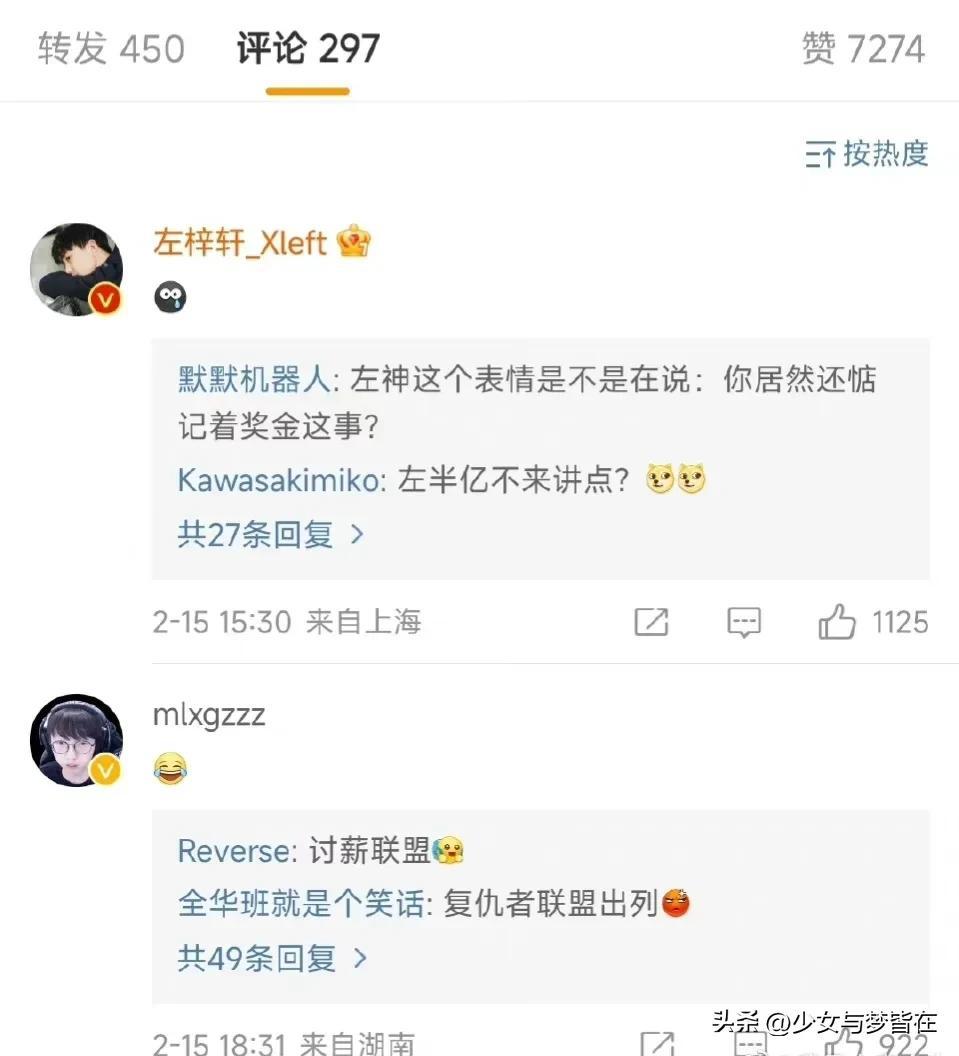 而前RNG.PUBG选手小叮当左梓轩、LOL打野Mlxg等等也纷纷现身评论区。