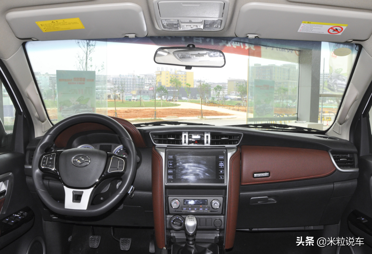 内饰设计,黄海·大牛的整个内饰采用的是近乎纯平的造型设计,具备宽敞的车内空间。中控部分搭载了内嵌式的触控屏,配置比较少,常见的手机互联这些配置在这辆黄海·大牛车型上并没有出现。不过它的棕红色内饰加黑色的双拼色造型倒是显得很接地气,整个内饰的设计比较的简洁,也特别的实用。座椅采用的是织物的设计,前后排都很宽敞,但是第二排的座椅靠背较直,长时间乘坐并没有太多的舒适度。