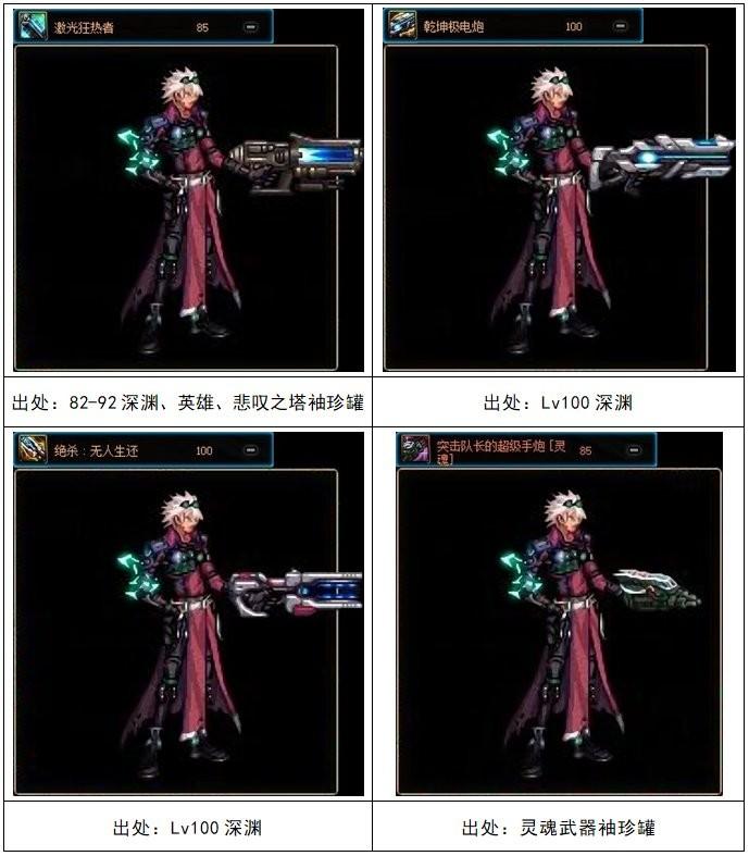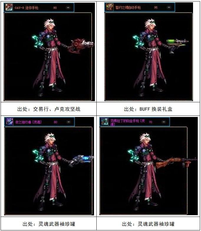 ◆论新颖感与新玩法短期内没什么问题,对个性展现也会迎来一波需求,幻化收录也尽量往这靠拢,但武器数量与种类实在太多,节日礼包中的武器装扮也有很多,所以这里仅收录一部分比较“个性”、“科幻”的武器外观;