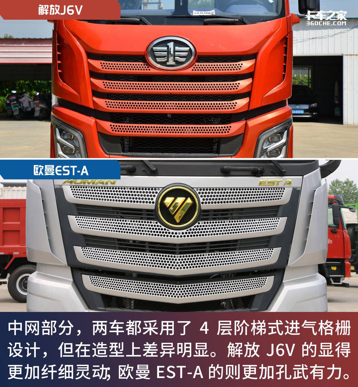 整体来说,同为38万元区间、520马力段的AMT自动挡重卡,实拍的解放J6V和欧曼EST-A虽然两车在外观、动力链、底盘、驾驶室布局和配置方面不尽相同,但是他们都是相当优秀的产品,对比之下又可谓棋逢对手,各自都有当仁不让的气势。