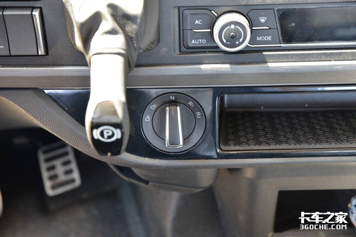 在现在的高端自动档卡车上,旋钮换档已经成为了潮流设计。第一,旋钮换档占用的空间更小,不管把它放在任何位置上,都不会显得突兀;第二,它的操作非常简单,甚至可以说“无脑”,就算没有接触过任何自动档,也能随便上手。