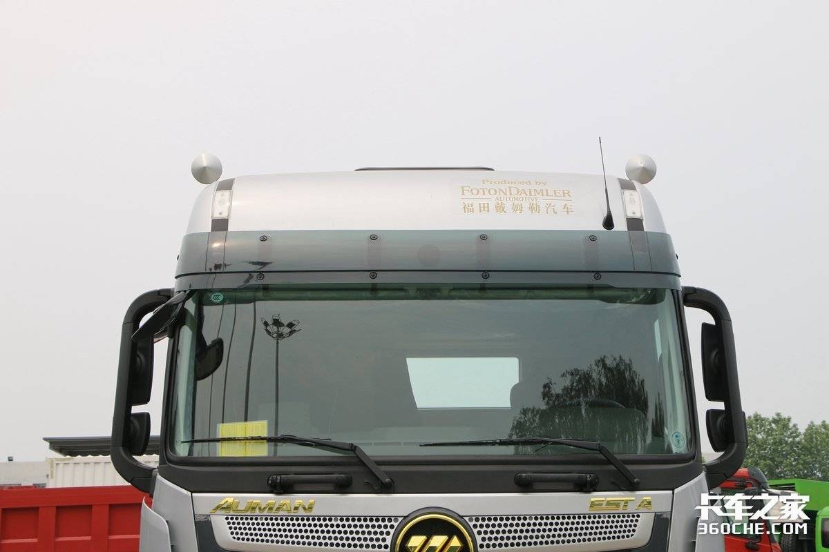 欧曼EST-A的车顶则带有两个装饰性的原厂气喇叭,这也是非常经典的卡车装饰物,在欧美卡车上都十分常见,这样的设计为本身就高大威猛的欧曼重卡增添了几分靓丽。