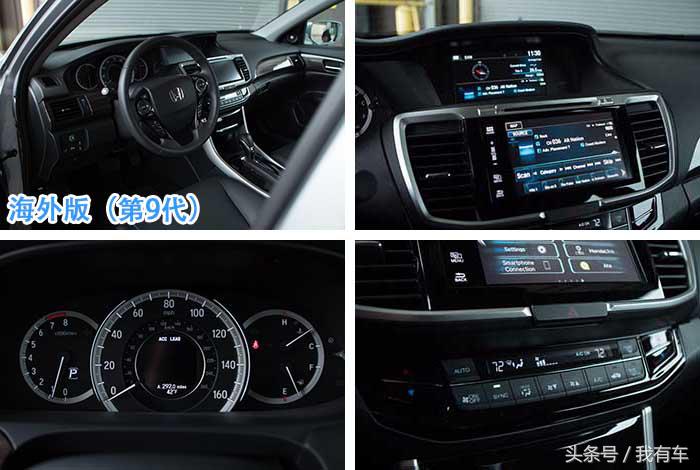 雅阁海外版内饰与国内现款差距不大,依旧是黑色内饰辅以银色饰条。中控台配备了两块液晶屏,科技感不错,下层是触摸屏,用来控制车内娱乐设施及菜单选项,而上层的主要用于驾驶辅助系统及导航。空调按键、三幅式多功能方向盘和仪表盘的样式,都跟现款差距不大。