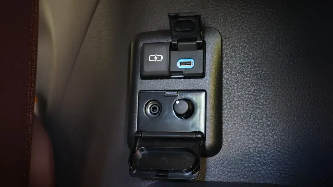 在顶配车型上,赛那配备了后排娱乐系统,可以使用手机投屏观看视频节目,对应的在第三排也设计了耳机接口和音量调节旋钮。未配备后排娱乐系统的车辆此位置仅有两个TYPE-C规格的充电接口。