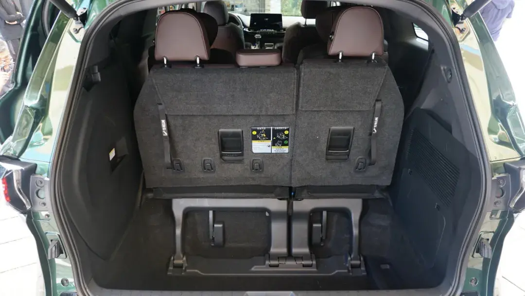 美中不足的是整车细节处的用料不够考究,第三排座椅收折后,座椅背面成为后备厢地板的一部分,但是表面材料薄而且不够平整,经常会有起翘情况出现,看上去就缺少一些精致感了。