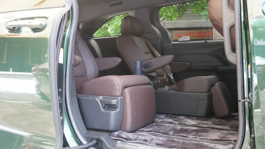 从前排看起,1995mm的车宽使得赛那车内安置两张座椅后,两边扶手中间还可以布置一个超大的扶手箱。