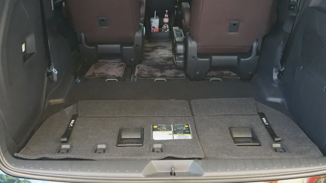 将第三排座椅展开后,后备厢出现了一个垂直高度可观的储物空间,这使得赛那在满载7人的状态下也能容纳7人的行李,这是比绝大多数7座SUV都要更有优势的地方。