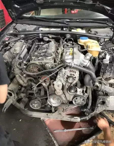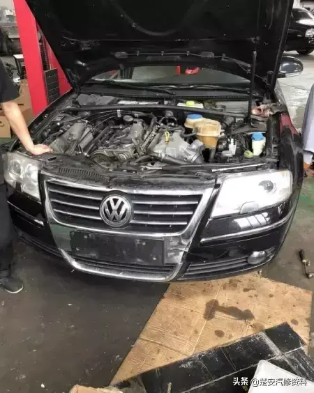 大众车系维修时有个特点,就是只要维修发动机前部,车头前部拆下来维修很方便。只要是大众4S店机修工,拆装都非常熟练,都不用钣金师傅。