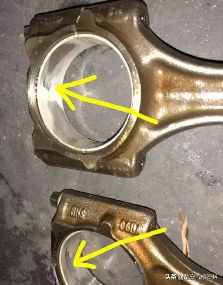 下图是其中两个连杆瓦都出现了划伤痕迹。