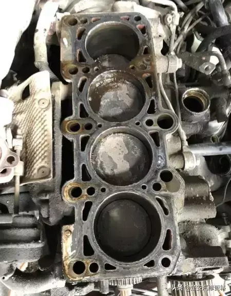 只看缸头感觉没有问题,但是也不要被它表面现象蒙蔽了,接来下将缸盖拆下来,看一下缸内的情况,缸壁有明显拉伤痕迹。