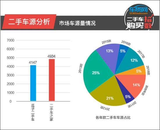 三、二手车源分析:市场车源存货量大 主要以2012-2013款为主