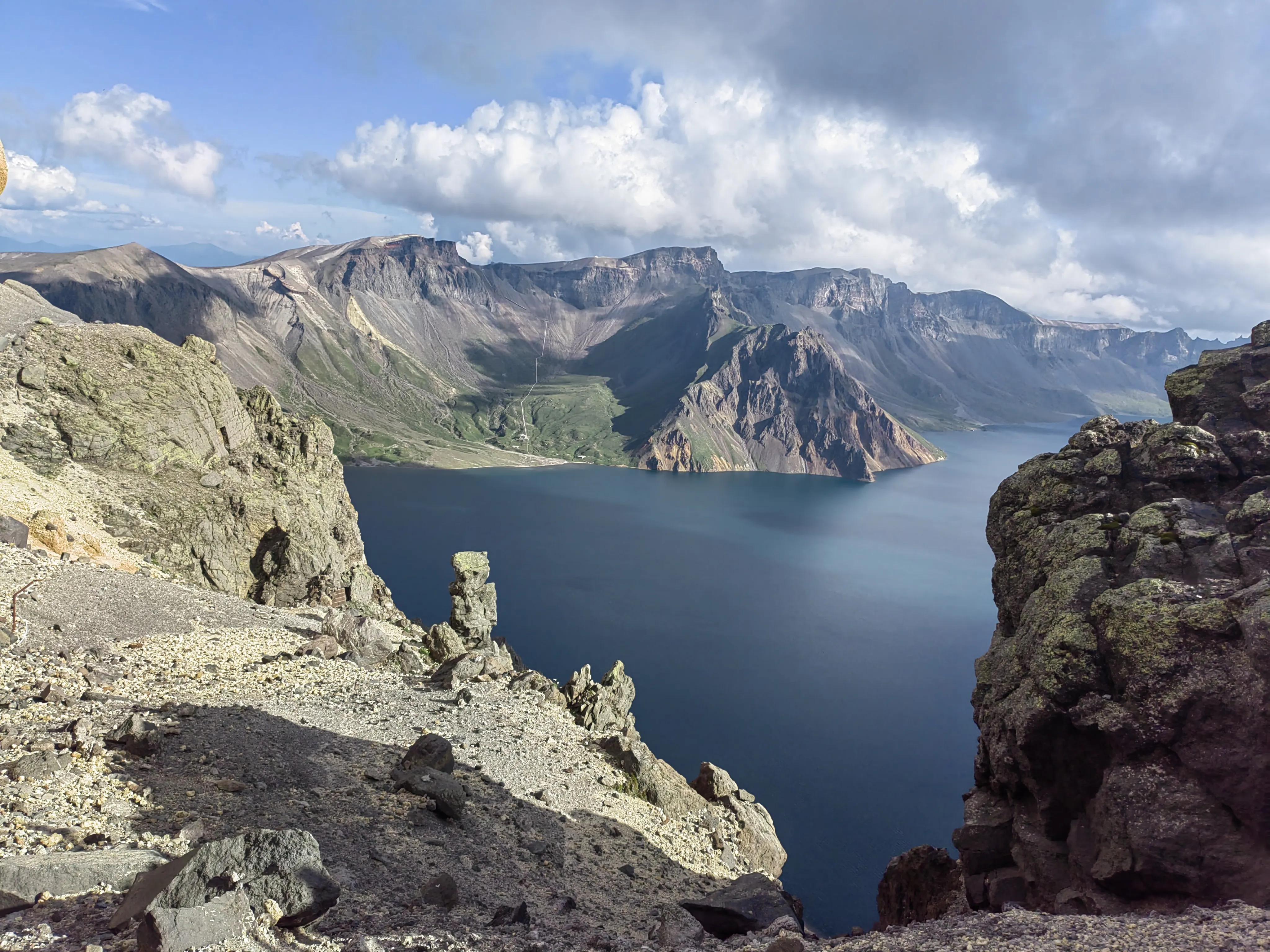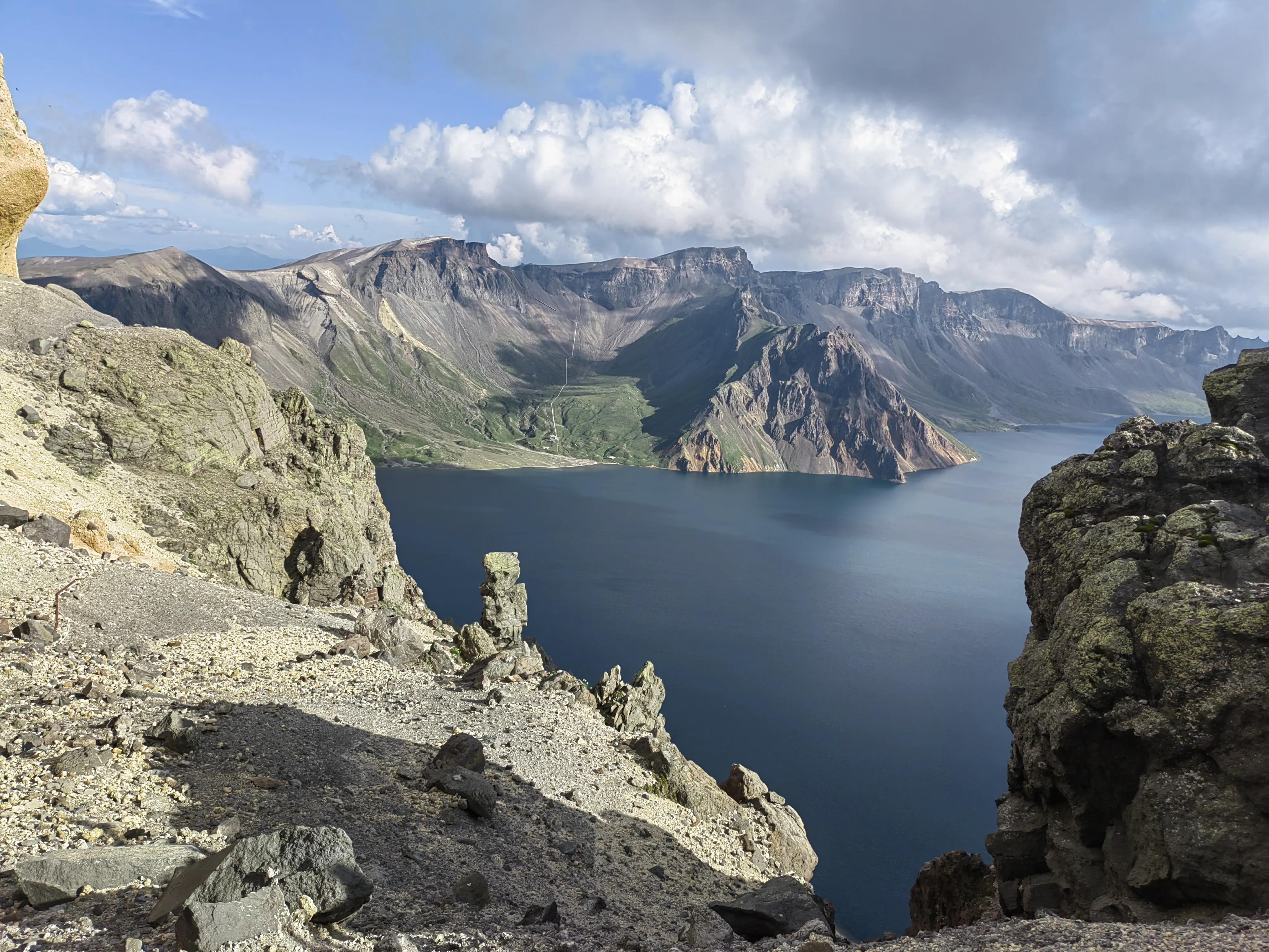 站在天池主峰口,看着铺满了火山石的地方,上面还星星点点开了无数小花,心情莫名感动,这么高的海拔地区,气候经常恶劣,还能开满小花,人真的太娇气了吗?