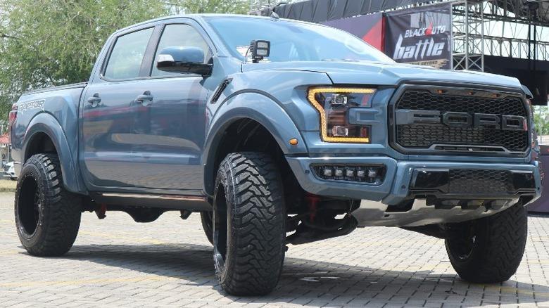 虽然该动力装置足以挑战大多数越野障碍,但福特宣布推出配备全新 5.2 升增压 V-8 发动机的 Raptor R,可产生 700 马力和 640 磅-英尺的扭矩。与 Ram TRX 的 702 马力(通过 福特)竞争的扭矩。Raptor 采用精密的悬架,包括采用电子控制技术的前后内部旁路减震器和五连杆后螺旋弹簧装置,即使在最危险的地形上也能为皮卡提供出色的牵引力和行驶质量。Raptor 还可以安装一套 37 英寸 BF Goodrich 全地形轮胎,以改善接近角、离开角和突破角,将离地间隙从 12.0 英寸提高到 13.1 英寸。