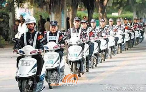 当然,现在也并不是所有的公务用摩托车都在追求大排量,看看上面这组巡逻车队,走的就是经济环保路线,一水的电动小踏板······