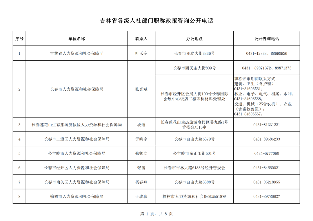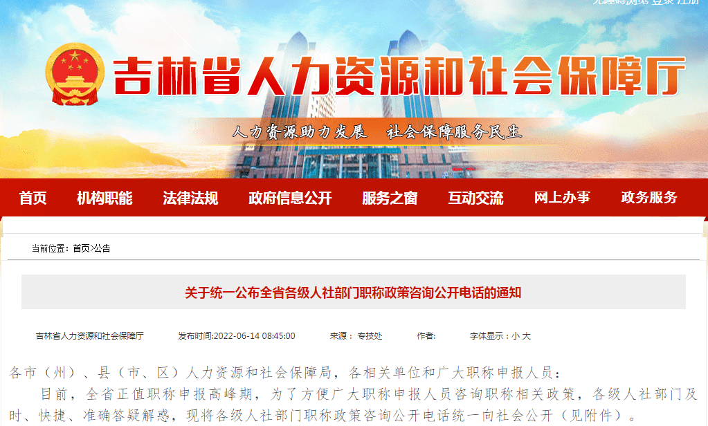 吉林省职称办(吉林省人社部门职称政策咨询公开电话公开)