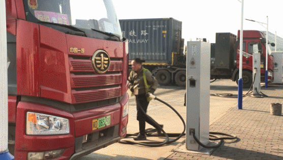 武安地处晋冀鲁豫四省通衢之地,又有许多家钢铁企业,工业短途货运发达。武安市保税物流园区是当地著名的货物集散地。以前,往来这里的重卡基本是烧油的,不仅排放量大,成本还高。