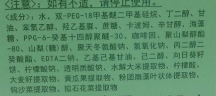 在这些活性物质中我们要提一下其中的一个原料——咖啡因,咖啡因是一种神经中枢兴奋药,与茶碱一样也有乌发作用,外用可促进其他活性物质的渗透和吸收,也是有效的促脂解物质(换言之从某种角度上它可以减肥),还可以一定程度上抗衰老,但同时也因为它是神经类药物,它在化妆品中应用的安全性尚未得到完全证实。