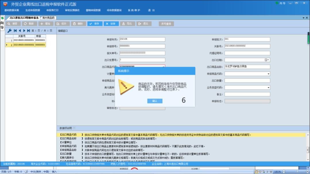 最近有企业反映,在录入出口退税申报明细数据时,系统往往提示商品代码无效或者失效,导致无法正常保存申报数据。这种情况应该怎么处理呢?