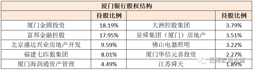 2022年3月3日,厦门银行发布公告称,根据厦门市委市政府的要求,厦门市财政局将其全部持有的厦门银行480045448股股份全部转给厦门金圆投资集团。这意味着,厦门银行的第一大股东将由厦门市财政局变更为厦门金圆投资集团,持股比例保持18.19%不变。其中,厦门金圆投资集团由厦门市财政局100%持有,因此这个变化并不改变实质。
