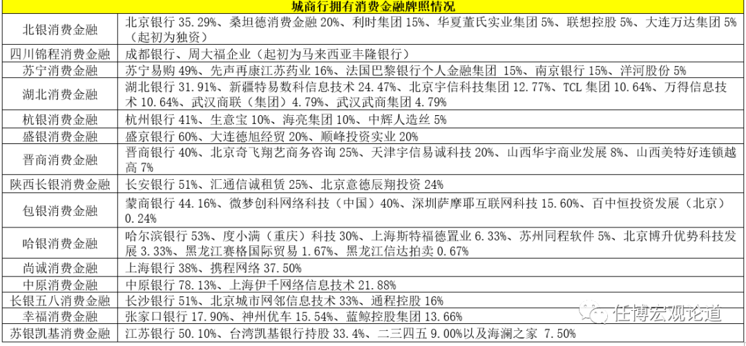 鉴于其它牌照获取的难度,多数银行基于政策的鼓励将金融租赁和消费金融视为首要选择。根据统计已设立金融租赁公司的城商行有22家,设立消费金融公司的城商行有11家。当然部分银行也拥有其它并不常见的牌照,如徽商银行参股奇瑞徽银汽车金融、西安银行参股设立比亚迪汽车金融等。