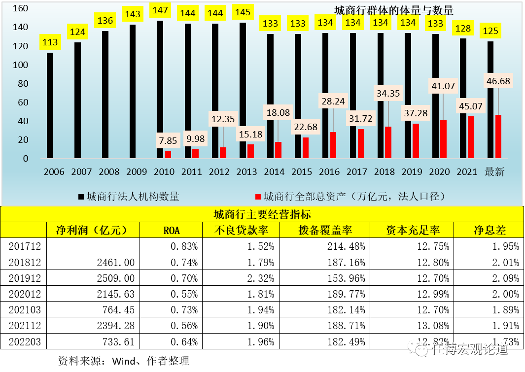 1、城商行群体:数量虽已降至125家,但体量仍持续升至47万亿元附近