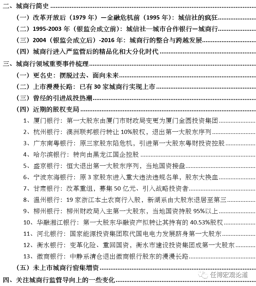 (三)近年来,城商行群体中的股权结构调整频繁、合并重组不断上演、管理人员动荡不止等事件表明,城商行群体目前正处于大变局中。实际上,已有实践表明随着城商行的异地展业被限制以及本土经营更为突出这一政策导向的强化,属地管理责任愈发重要,未来城商行股权结构的当地国资化倾向亦将愈发明显,一些出险或半出险城商行的股权变局大都由当地国资主导,这也意味着地方政府在城商行未来经营与发展中的主导地位势必会越来越突出。