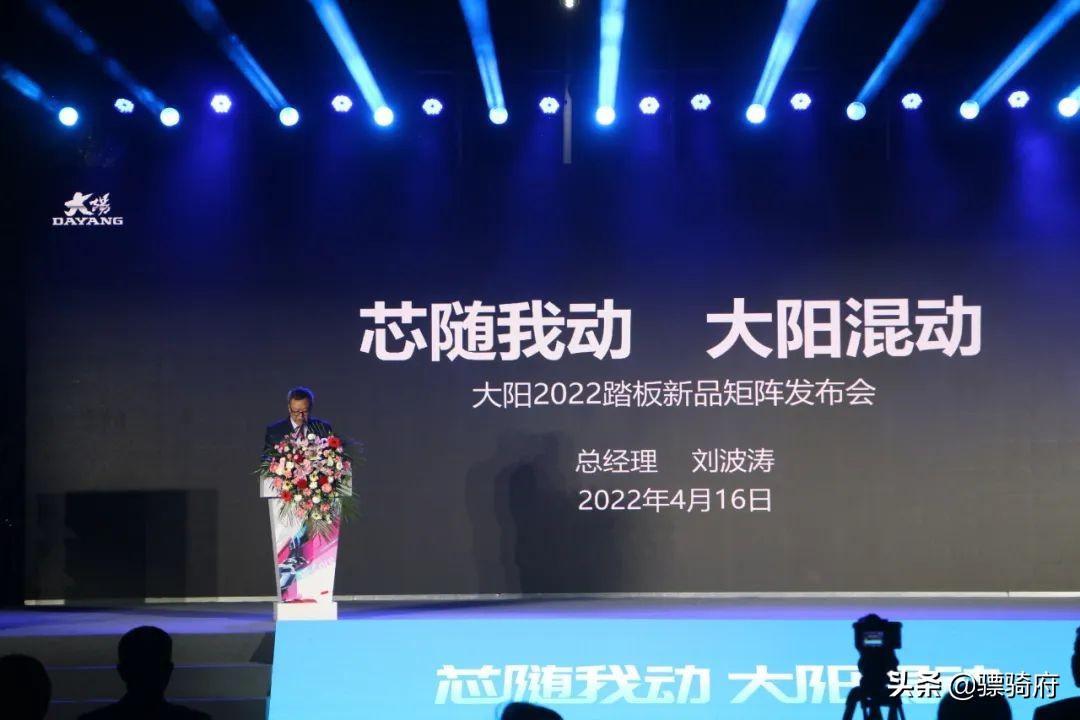 4 月16 日晚,洛阳北方易初摩托车有限公司在其工厂试车场组织了一场题为“芯随我动,大阳混动”——大阳 2022 踏板新品矩阵线上发布会,九款