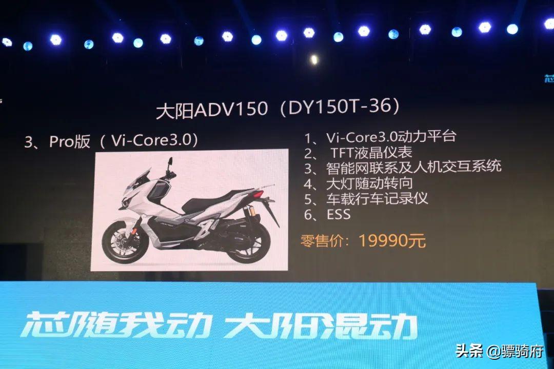 V锐ADV150 是去年就上市的一款跨界踏板车,其具备的高颜值、高配置、高性能赢得了很多用户青睐,在此基础上,大阳这次又推出了混动 3.0 芯动版(16990 元)和 Pro 版(19990 元),产品升级,价格同时下探。