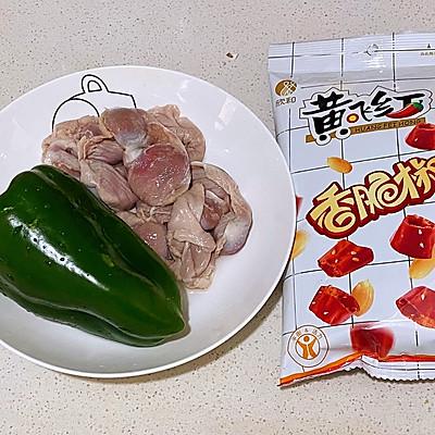 1、食材准备:青椒1个、鸡胗200克、黄飞红香脆椒;