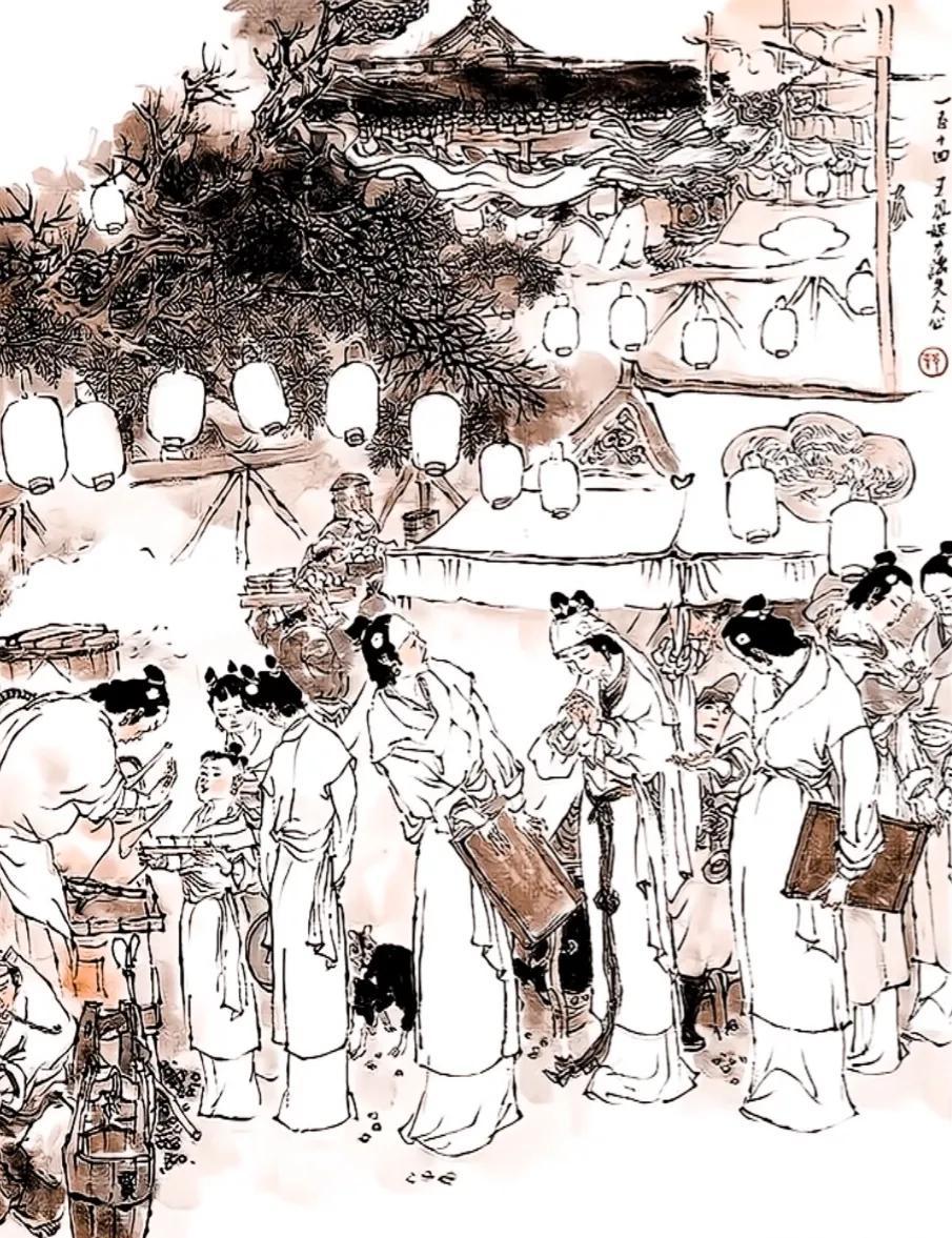 大祥过一个月后是禫祭。祭祀后大宴宾客,这时候漫长的丧事才算大致完成 ,可以完全除去丧服,能够喝甜酒、听曲乐。