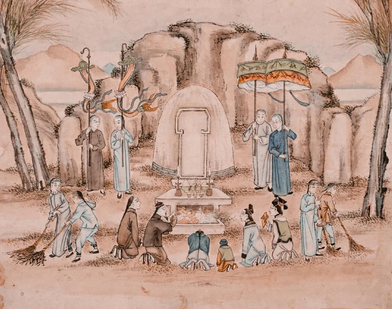 《搜神记》里就讲过一个叫田琰的西晋人,母亲死后得在她坟边搭个草棚住上三年,只吃粗饭和水,连一句话都不能和妻子说。