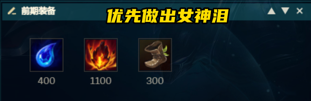 打野刀的选择上,对手位移多、拉扯能力强就出蓝打野刀,反之红打野刀。前期出装顺序上,推荐优先做出女神泪叠蓝量。梦魇全技能CD较长,叠女神泪速度很慢,因此放在第一件出,随后优先做出小日炎来提升刷野速度,随后做出护甲与魔抗来合成霜火护手即可。