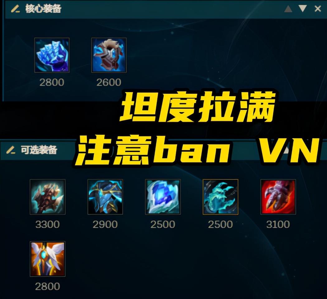 三件套推荐为霜火护手、凛冬之临、冰心/自然之力。神装则是在血手、怨恨锁链与复活甲中进行选择即可。一身生命值装备血手收益极高,怨恨锁链则是能最大化梦魇在后期对对手C位的限制能力,让恐惧时间更久。复活甲想必不用多说,开团手必备装备。后期金身加复活甲可以打两波关键团战,从而结束游戏。