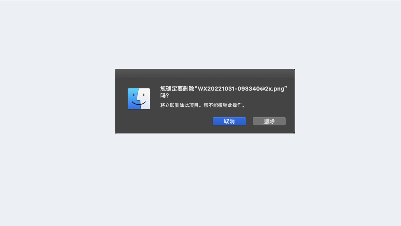 Mac系统:在回收站删除文件将是永久性删除,此时的确认对话框才是对用户有用的。