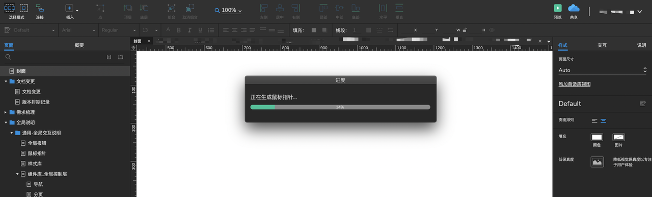 例如:使用Axure软件导出html文件时的进度提示,既提醒用户当前Axure正在运行,又告知用户当前文件导出进度。