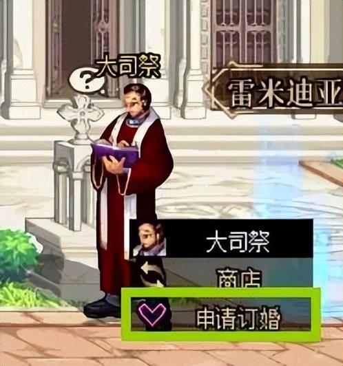 结婚双方组队来到赫顿玛尔NPC大司祭前,选择[申请订婚]按钮。