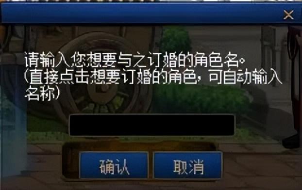 输入订婚对象角色名,用鼠标左键可自动输入。