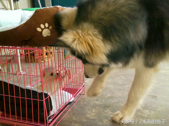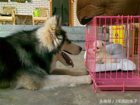 看到这粉粉的爪子,太萌了。隔壁家的大狗刚好来看看小狗,估摸着小狗很想跟它玩,但是怕它受伤就没放出来。