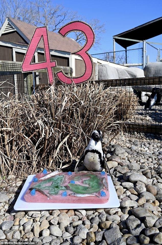 一只名叫ET的雌性南非企鹅,在美国弗吉尼亚州的“大都会里士满动物园”(Metro Richmond)里度过了43岁生日之后,被